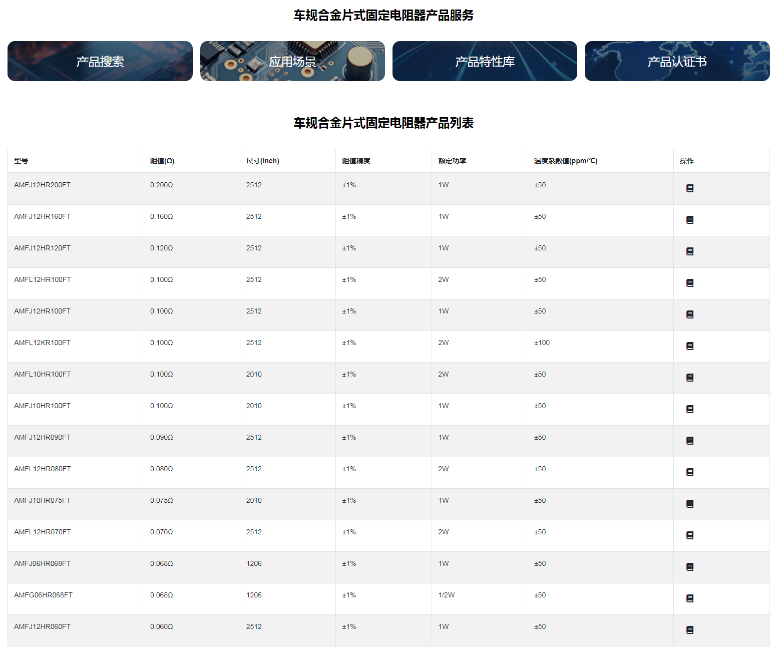 车规合金片式固定电阻器