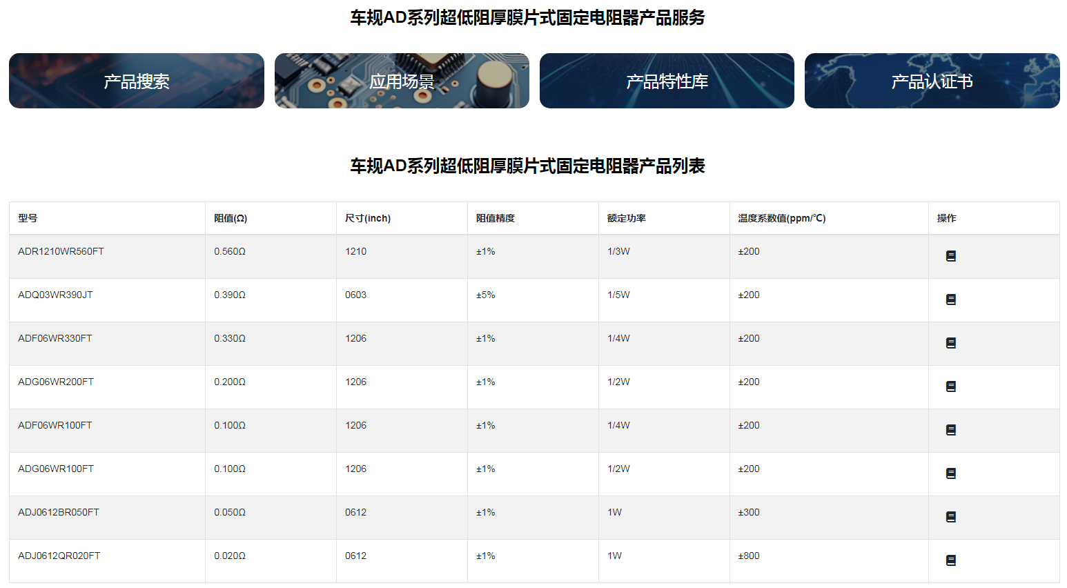 车规AD系列超低阻厚膜片式固定电阻器