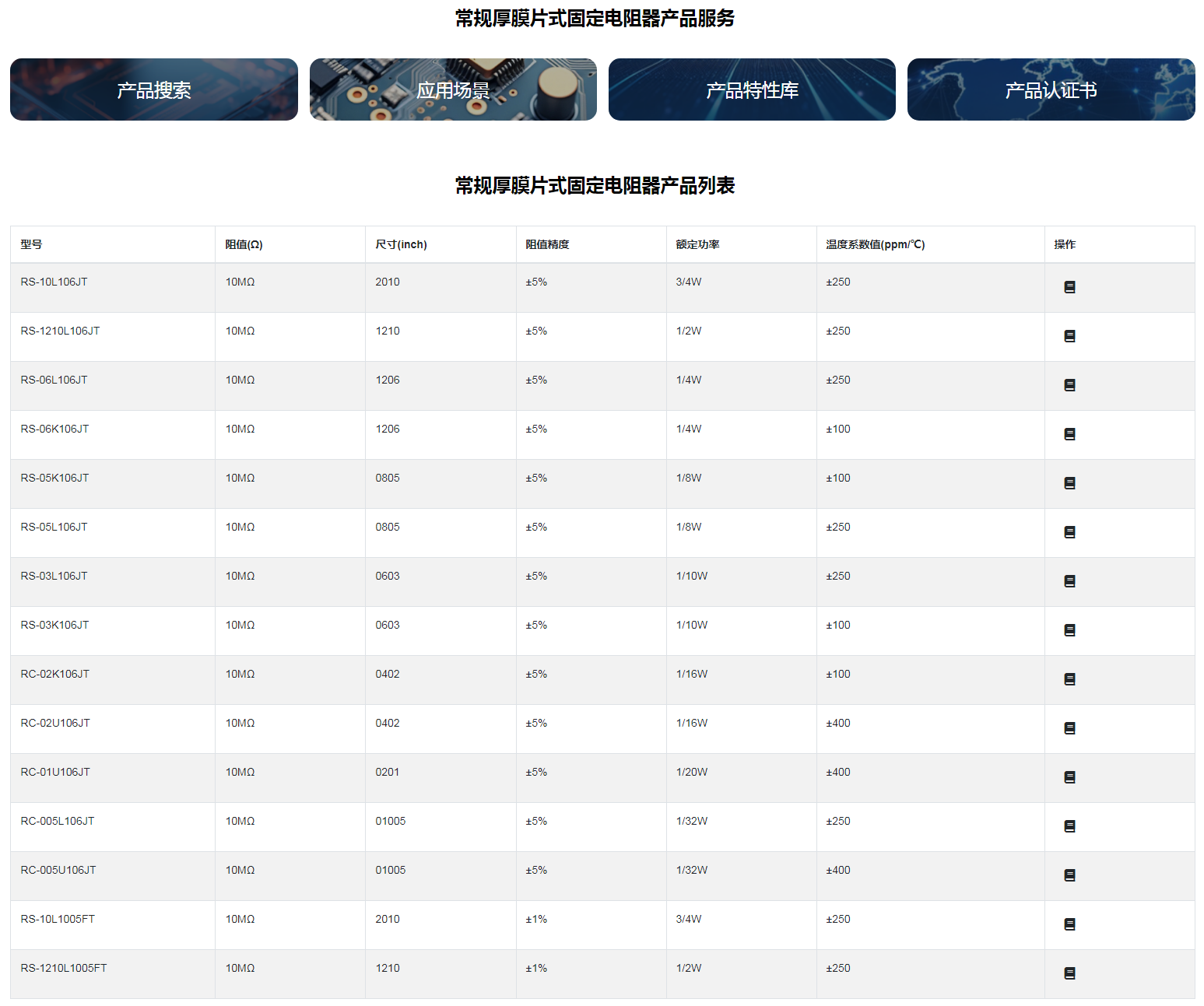 常规厚膜片式固定电阻器