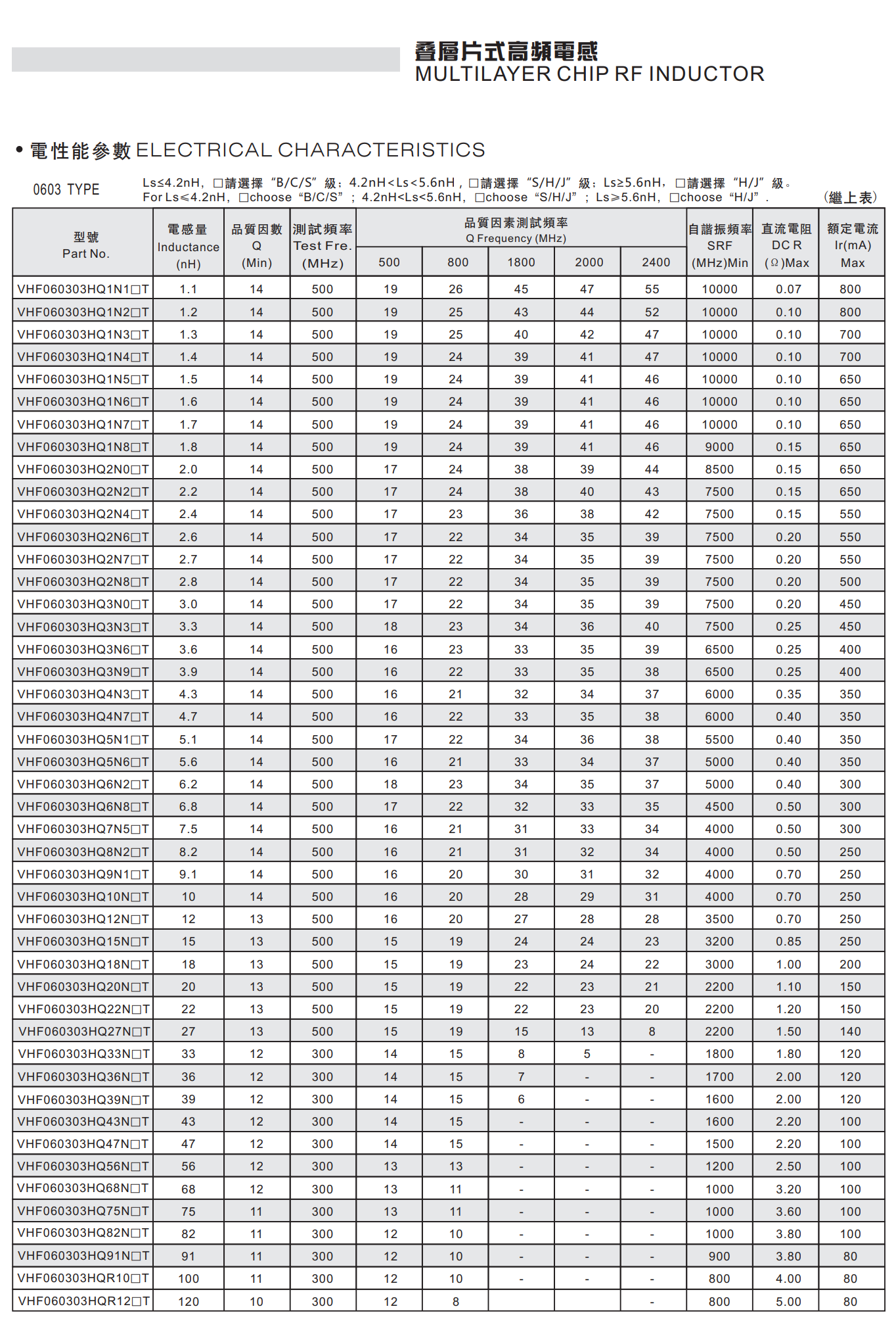 叠层片式高频电感器具有高自谐振频率的电感器,叠层独石结构,具有高可靠性,用于高频电路,移动电话、对讲机、PHS和PDA,包括手机射频模块,Wi-Fi模块,蓝牙模块和各种类型的匹配电路。